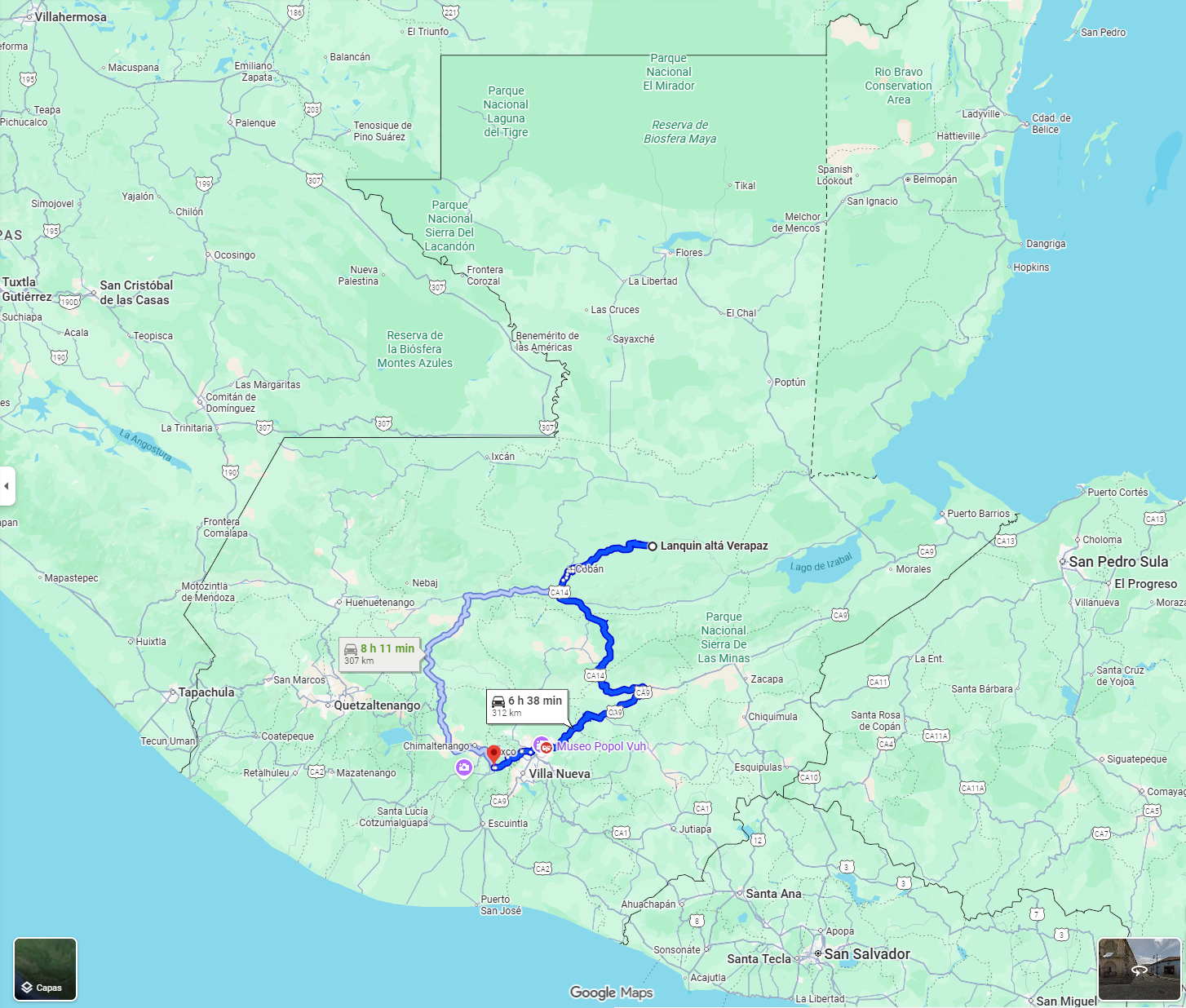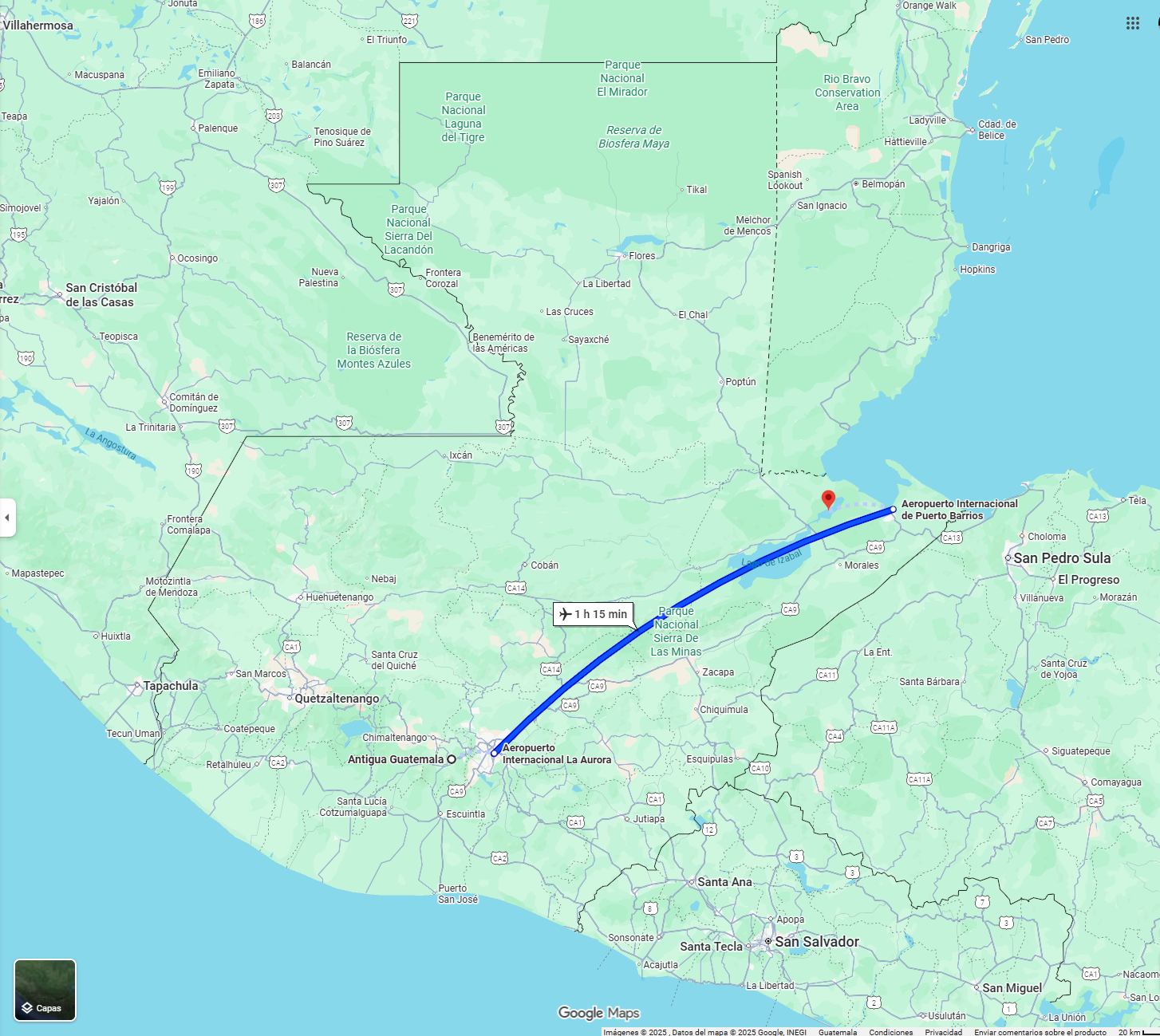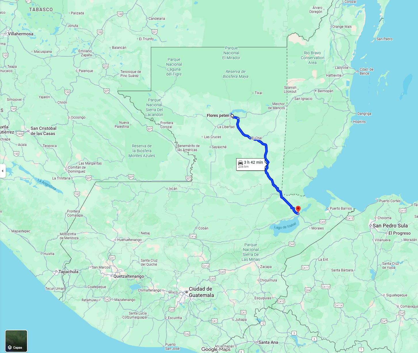 • Boarding point: Bus station in Flores, Petén