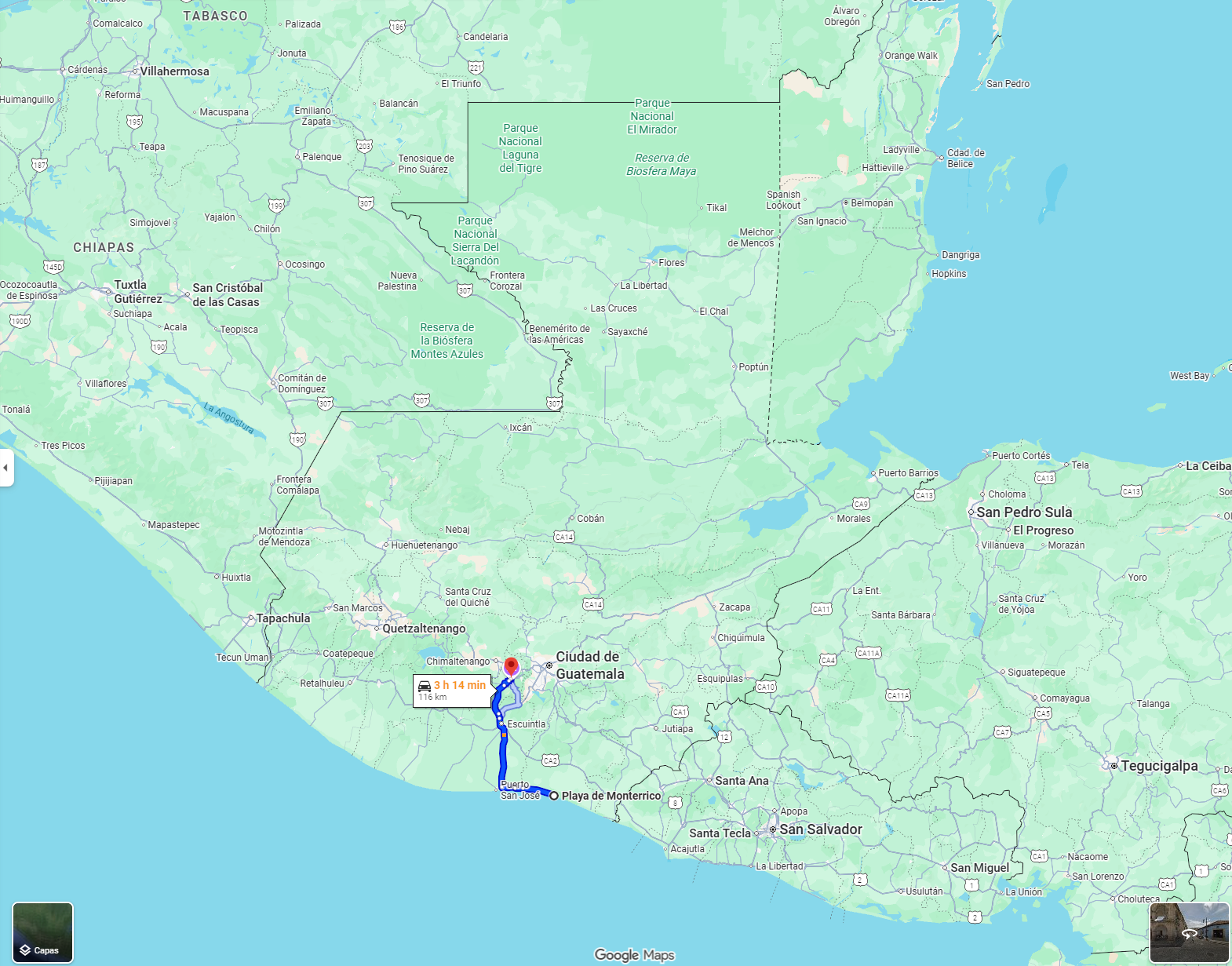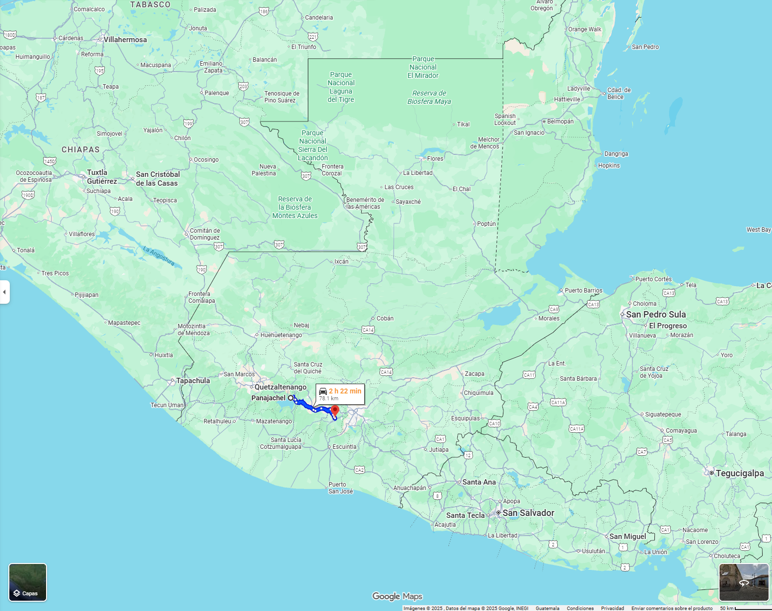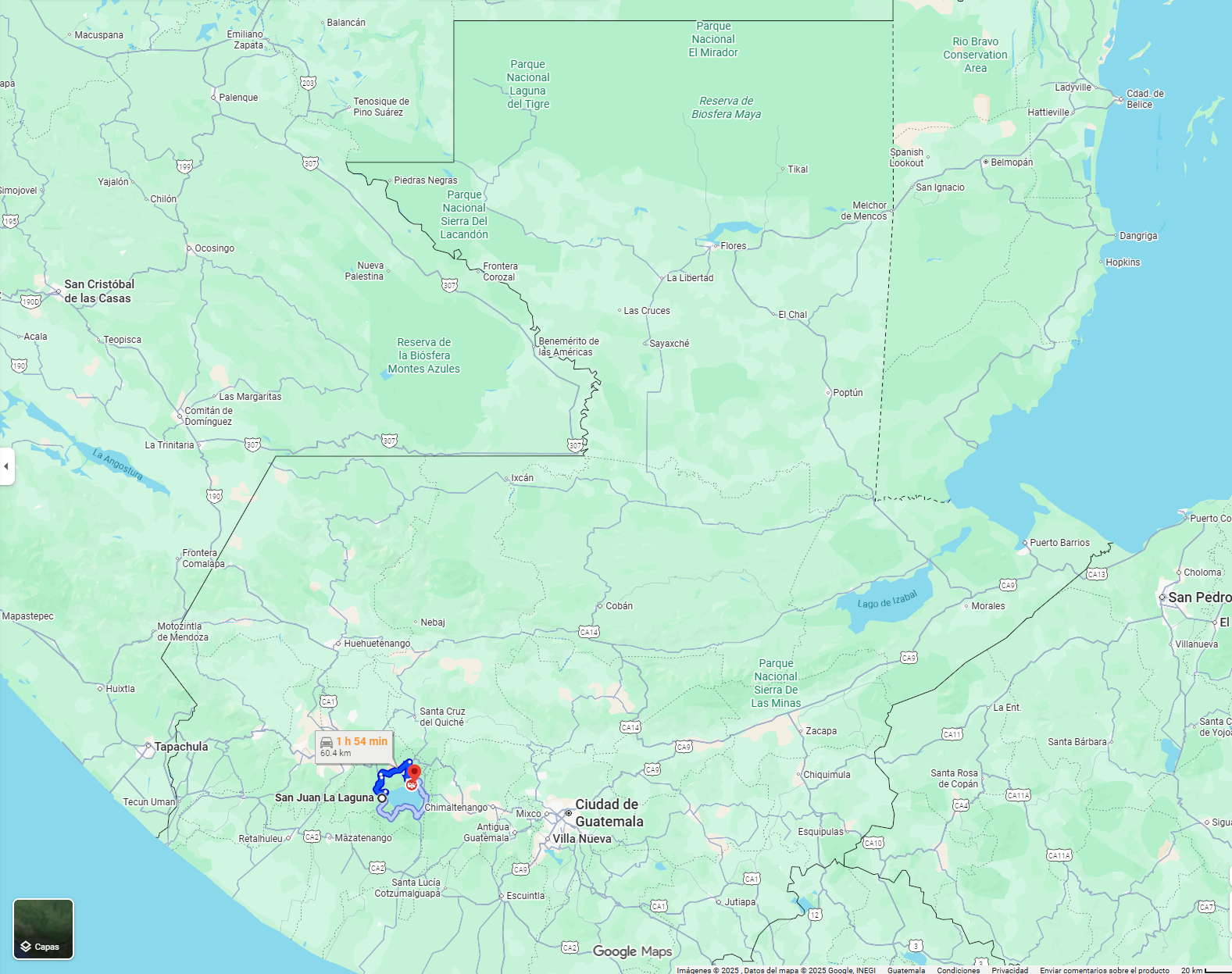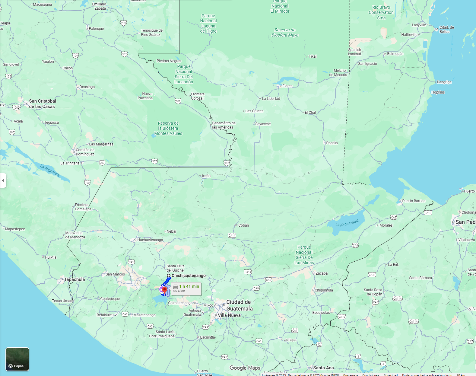 • Boarding point: Bus station in Flores, Petén